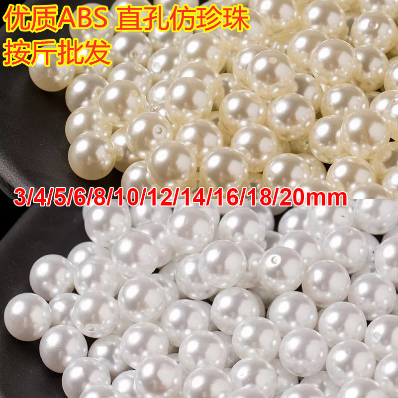 Abs模造真珠散珠有孔米白純白穿孔diy宝飾品ビーズ模造真珠散珠ビーズ材料