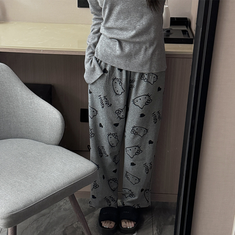 パジャマのズボンの女性のズボンの春と秋の純綿のアニメの甘くてかわいい部屋のズボンのゆったりしているレジャーの家のズボンは外に女性を着ることができます。