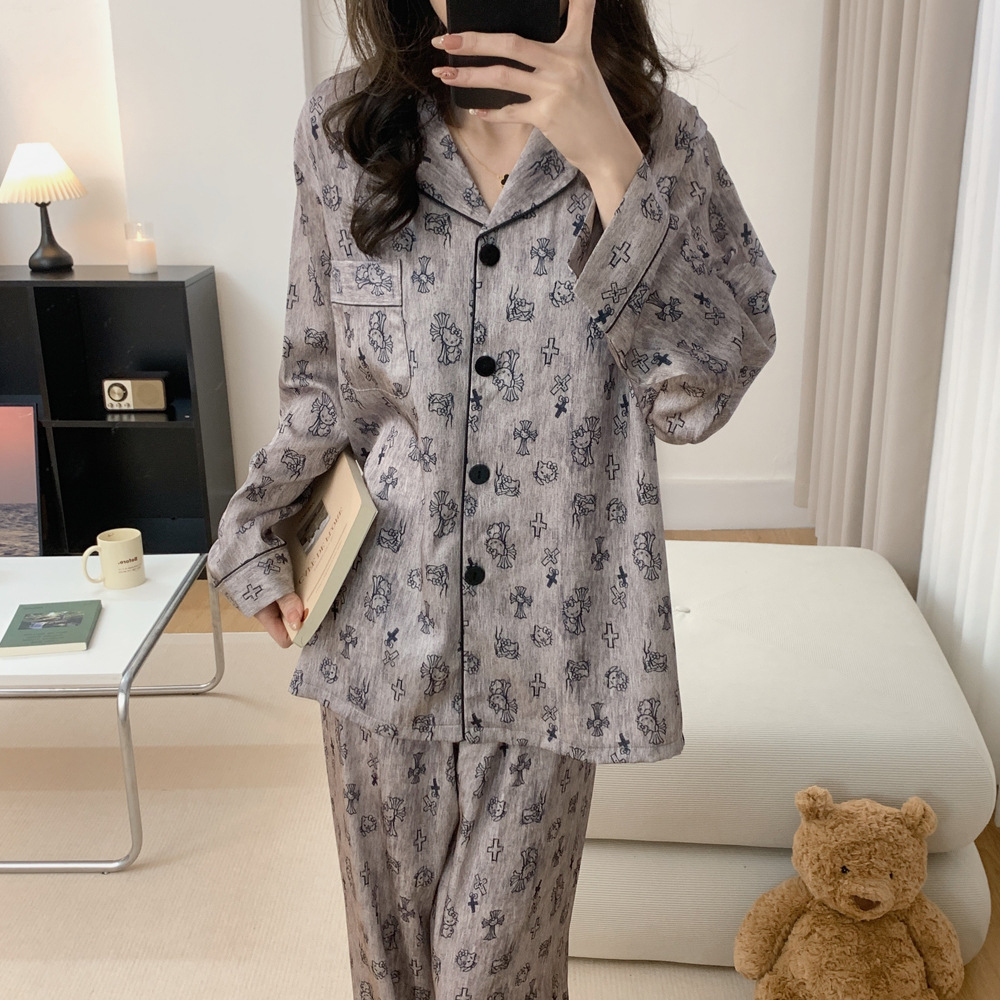春と秋の氷のパジャマの女性の長袖のズボンのカーディガンのネットの赤い風の甘くてかわいい部屋の服の2セットの女性