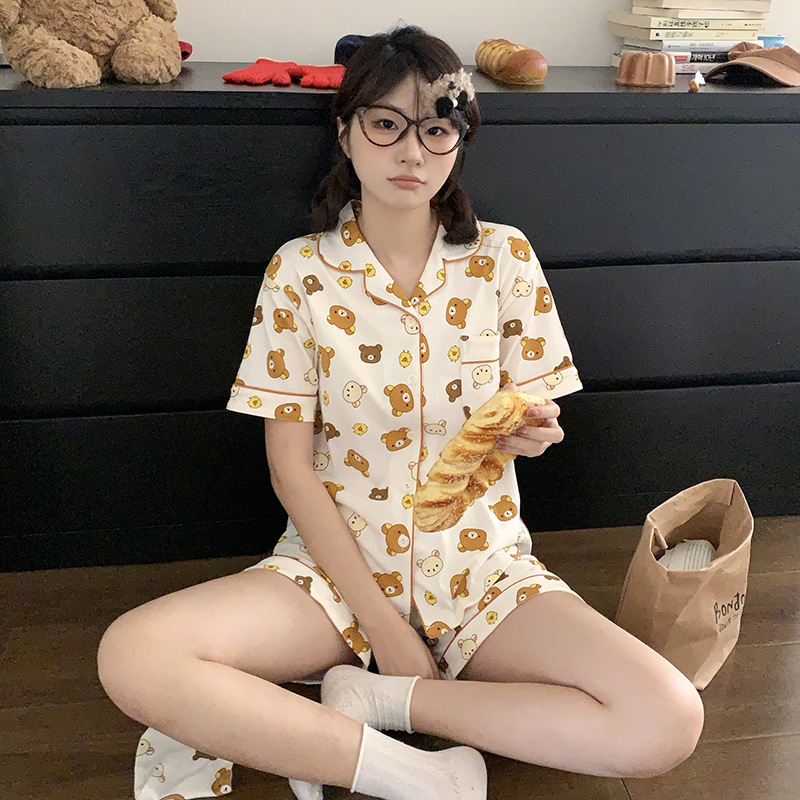 アニメ自嘲熊パジャマ女性夏半袖半ズボン純綿甘美で可愛い日系学生ホームウェア2点セット