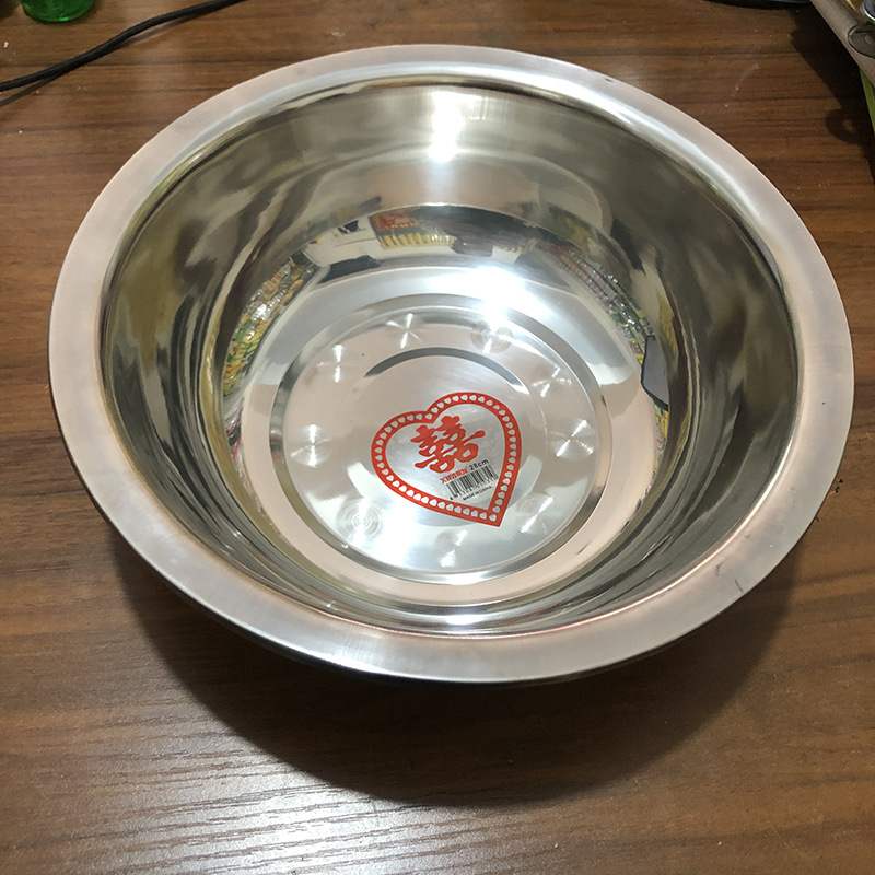 ステンレス盆非磁性双喜盆の裏側ステンレス盆ステンレス家庭用盆五元店ステンレス洗面器