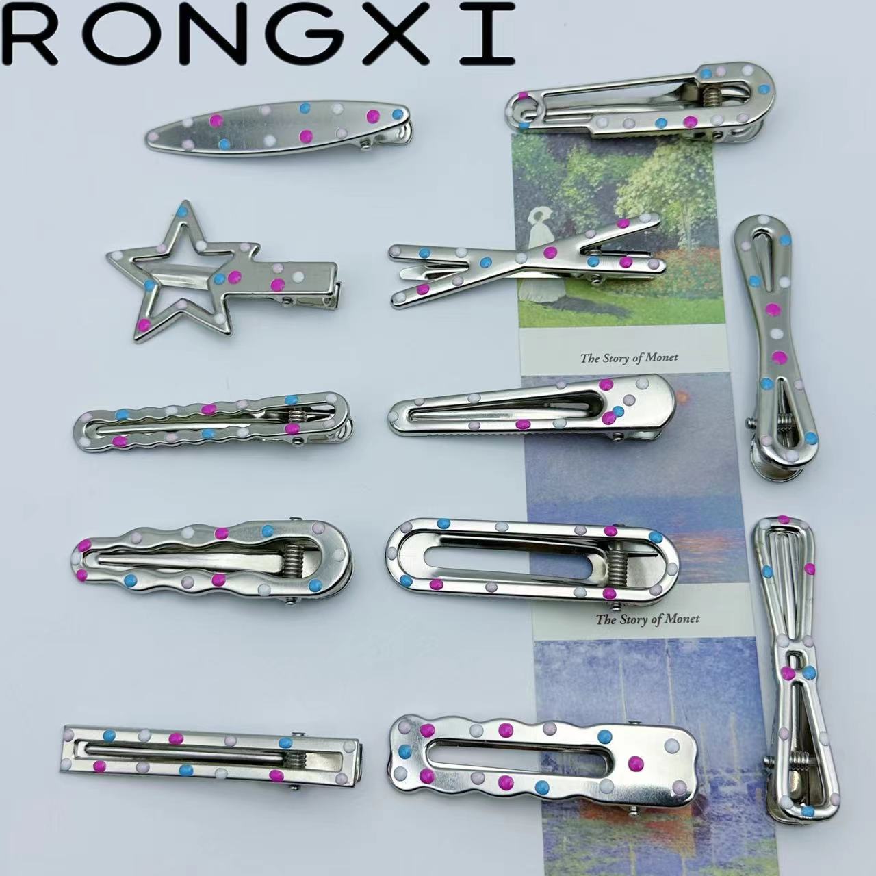 6cmカラードット金属ヘアクリップ側にカモ口クリップ一字クリップ雲洋気前髪クリップdiy頭飾り