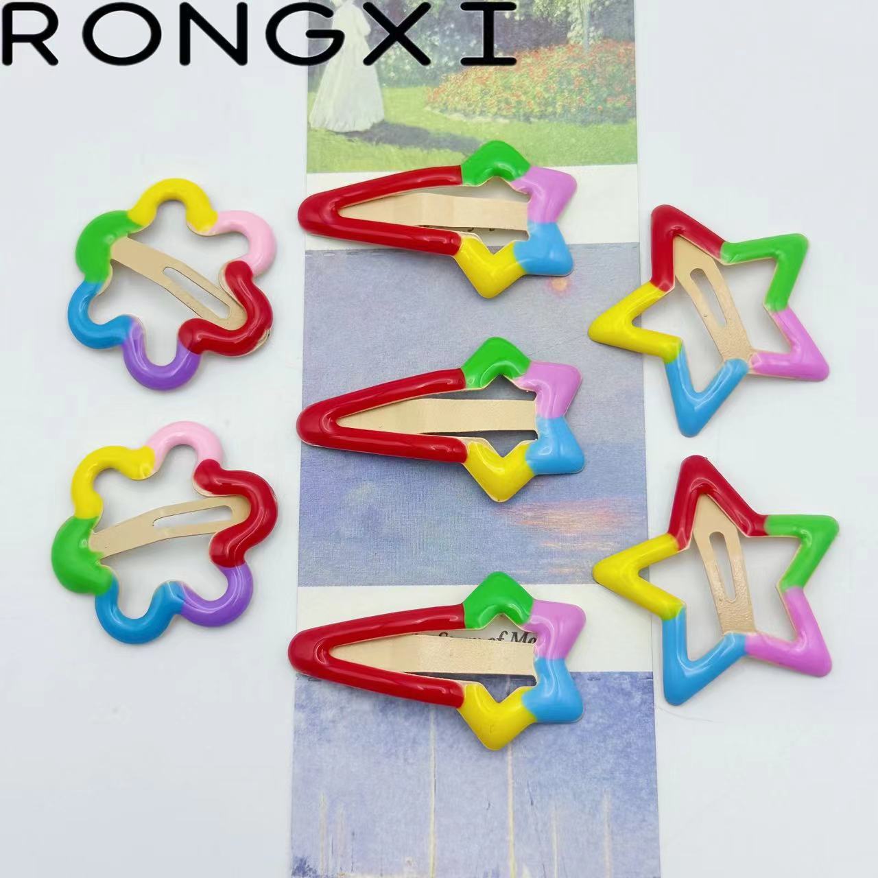 ドリップオイルカラフル流れ星花五芒星キャンディー色bbクリップ前髪クリップサイドクリップヘアクリップカラー星ins