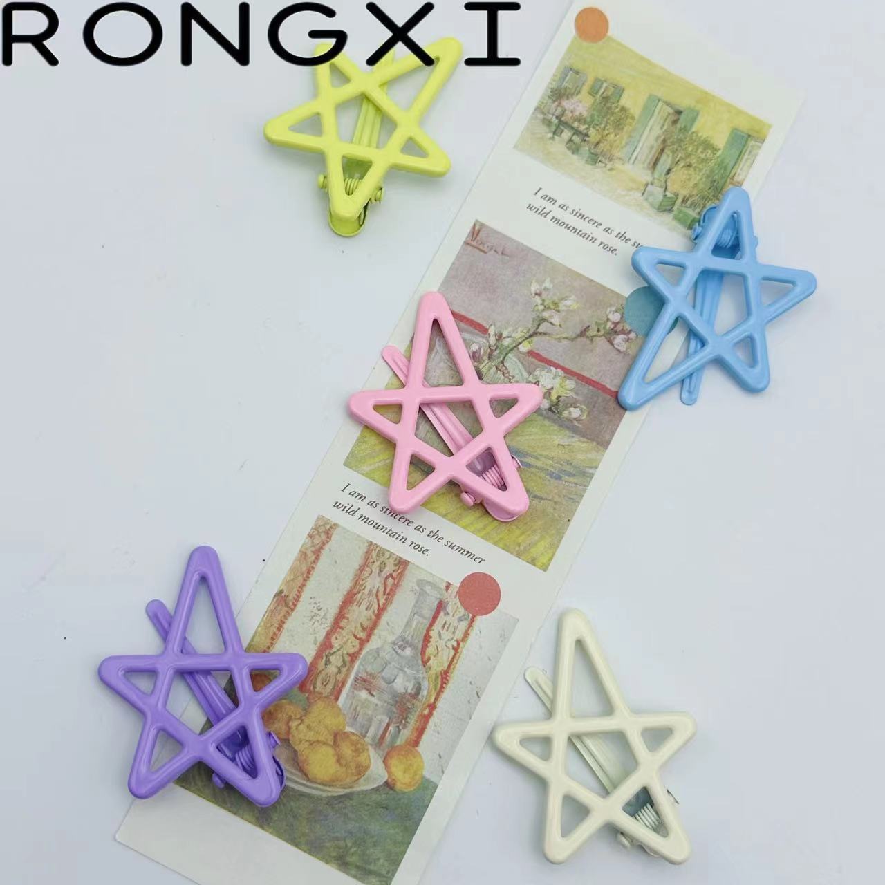 4センチの新型ドーパミンy 2kの透かし彫りの斜めの五角星のヘアピンのサイドクリップの甘い少女の跡のないヘアピン