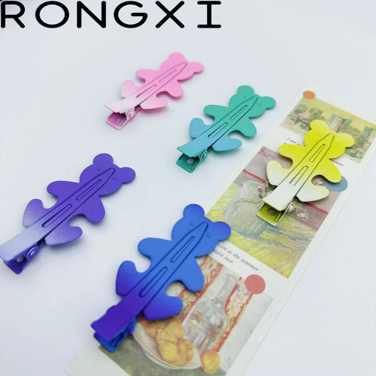 6センチの可愛い熊のヘアピンの木の形でグラデーション色を挟んでいます。