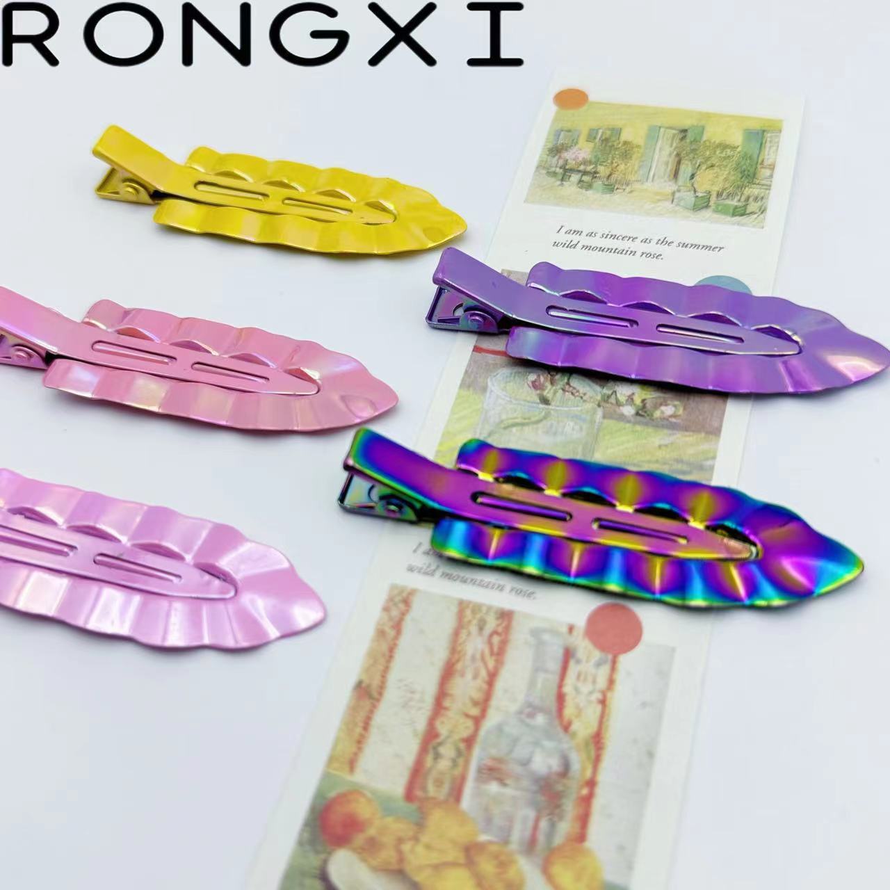 7センチフラッシュグラデーションウェーブブレードヘアクリップ洋気人鱼姫ドロップオイル无痕ヘアクリップ可爱い少女サイドクリップ
