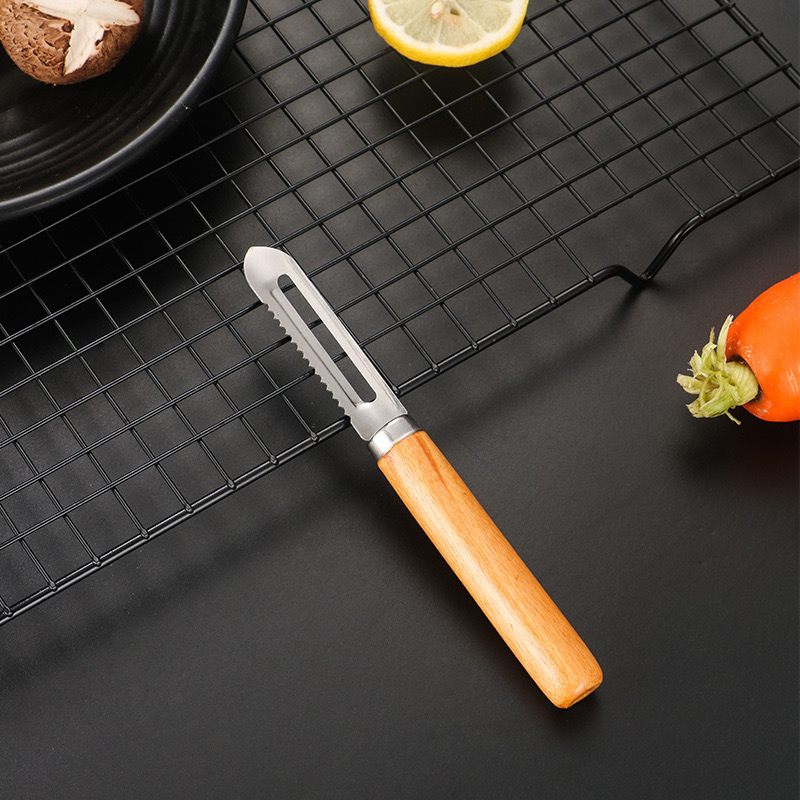 現物ステンレスの皮むき刀の木の柄の皮むき器のキュウリのトマトの皮むき刀の糸削り器の家庭用台所の小道具
