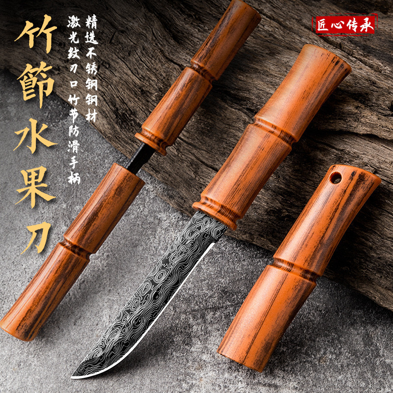 竹の節の果物の刀の家庭用の皮むきの刀のダマスクの紋様のアウトドアナイフの鋭利なキャンプの携帯の小さいまっすぐな刀は速達を分解します。