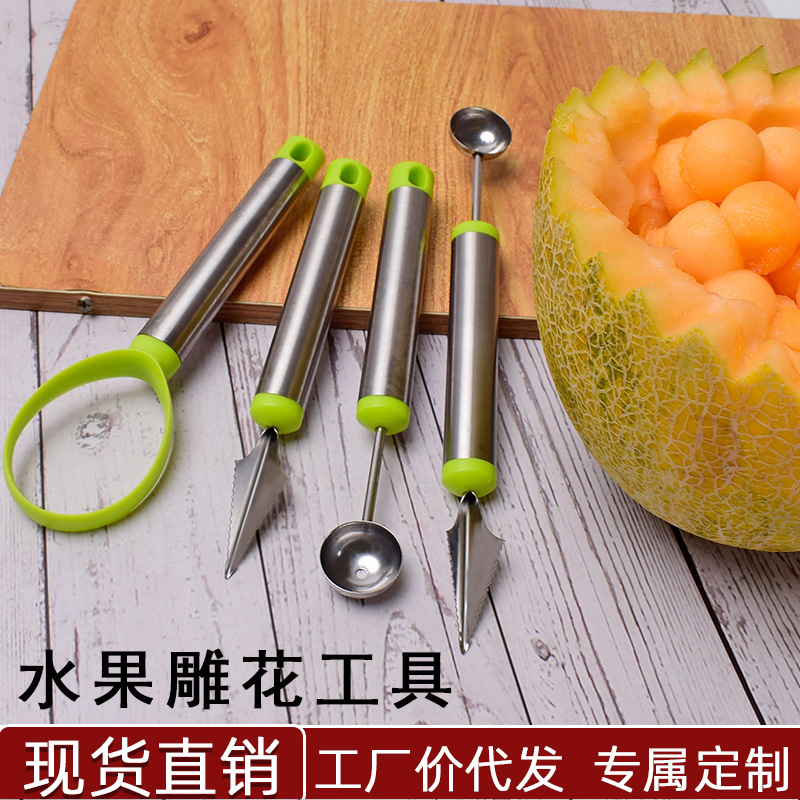 ステンレス果物切掘りボールセットダブルヘッド創意キッチン果物盛り合わせツール彫刻刀スイカスプーン