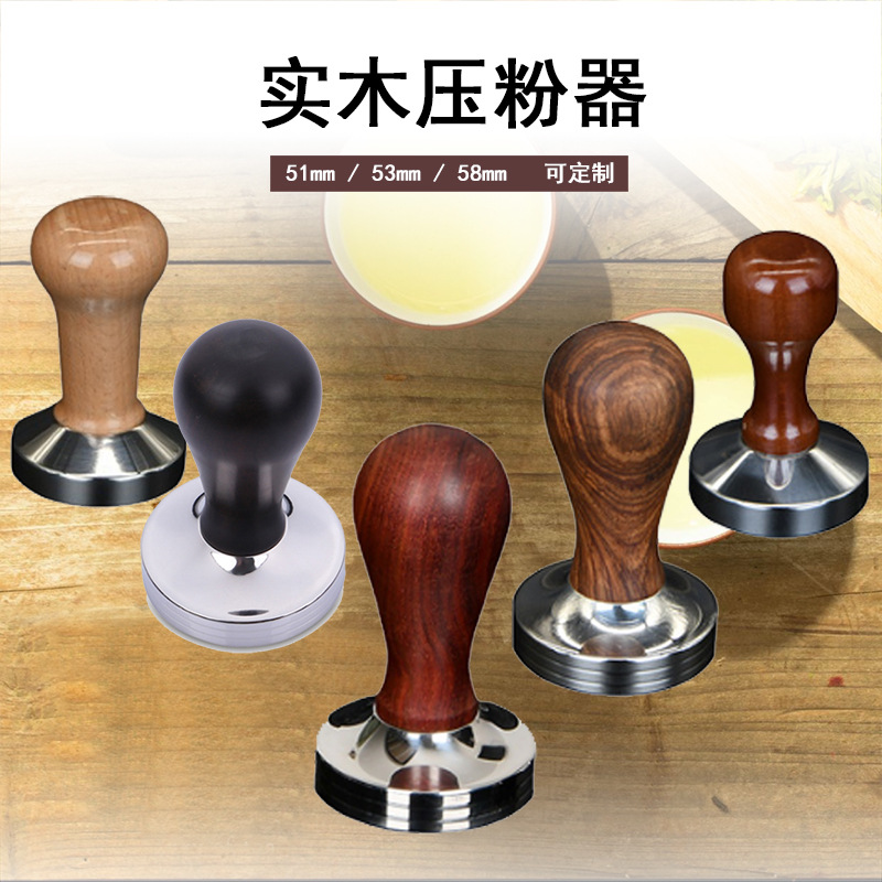 粉ハンマーコーヒー圧粉器木ハンドルコーヒーマシン49 51 53 58mmステンレス平底圧粉マット