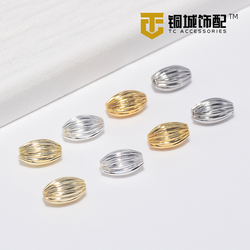 14K包みの金のオリーブのビーズのストライプのビーズのビーズのビーズのビーズの材料DIYのアクセサリーの部品のビーズの卸売り