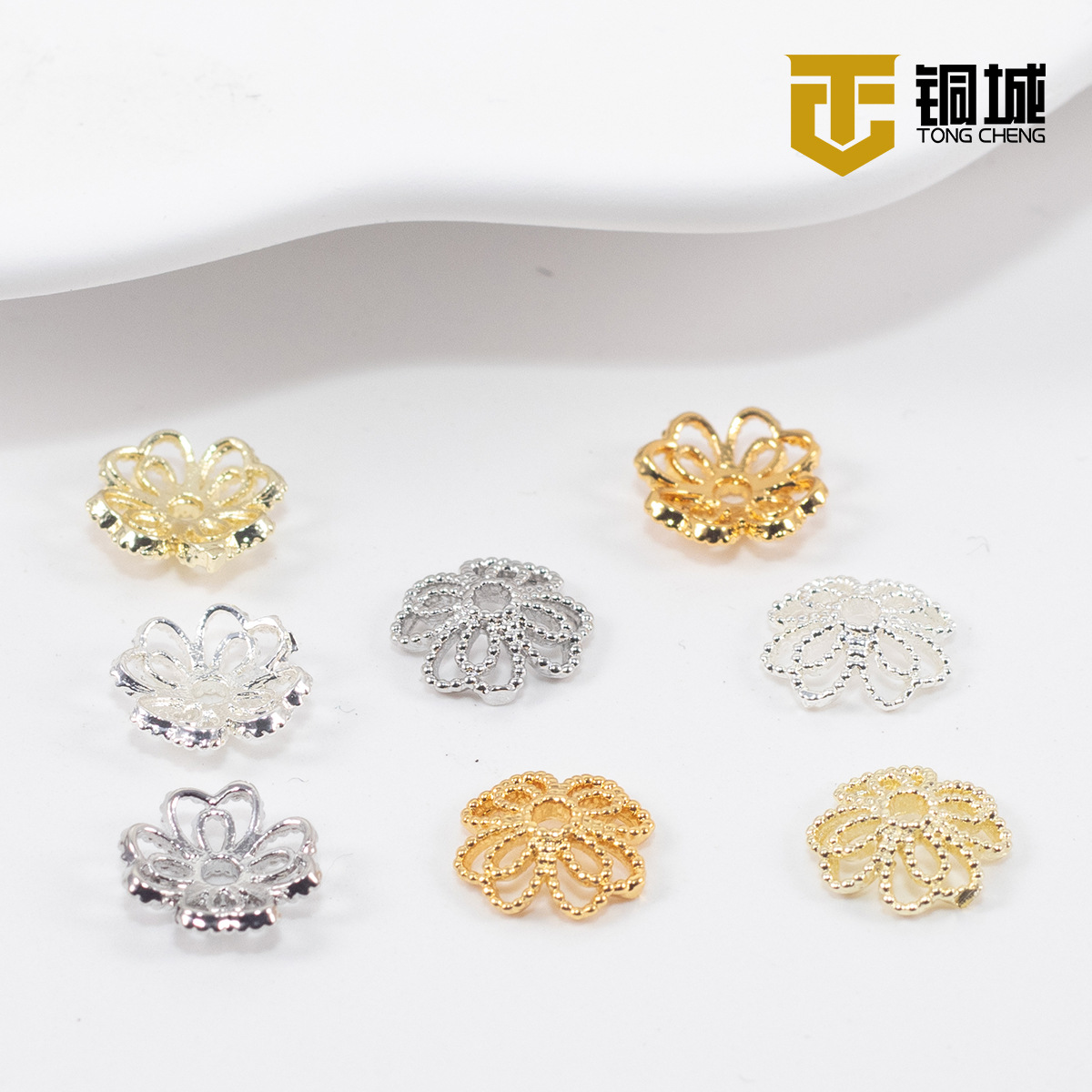 14k包金高保色花托透かし六角スペーサー手作りdiy手串珠托アクセサリーブレスレットスペーサー