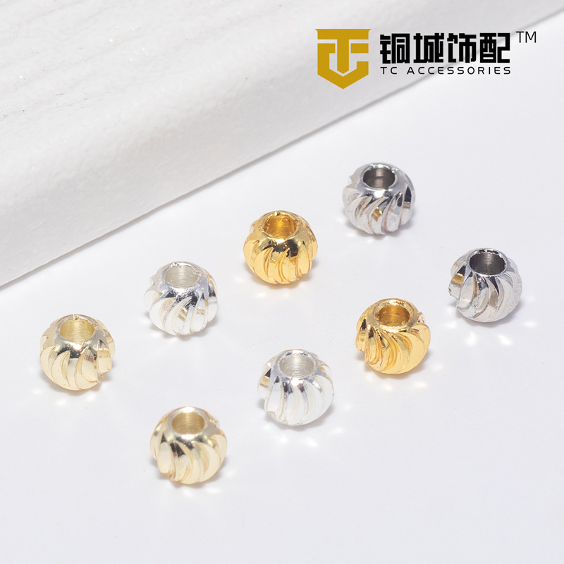 14k包金凹面車輪片保色手作りdiyビーズアクセサリー銅メッキ真金光沢面散珠ブレスレットビーズ