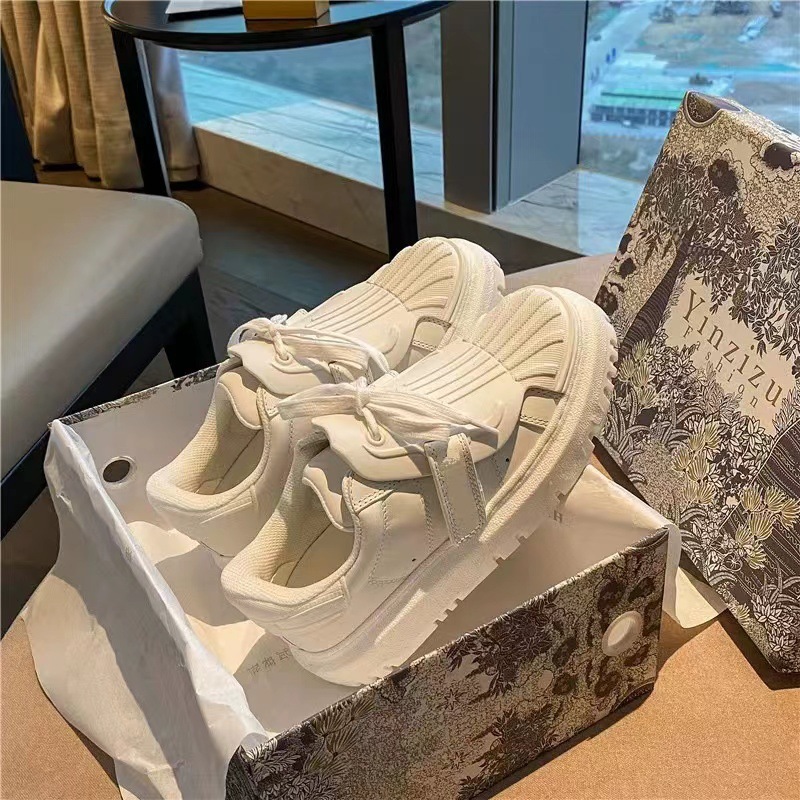 D's 2024年高級版シェルトゥホワイトスニーカー、女性用多用途厚底カジュアルスポーツシューズ、プラットフォームシューズ、レディースシングルシューズ