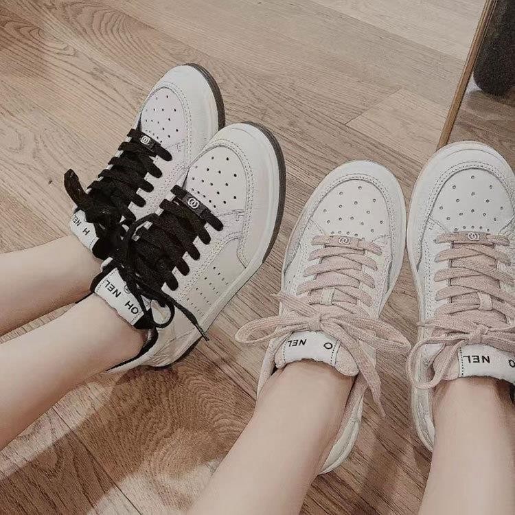 2023春夏 シャネル風 レースアップ レター入り 本革 パンダシューズ スニーカー レディース ネットセレブ愛用 万能 浅口 スポーツシューズ ローヒール