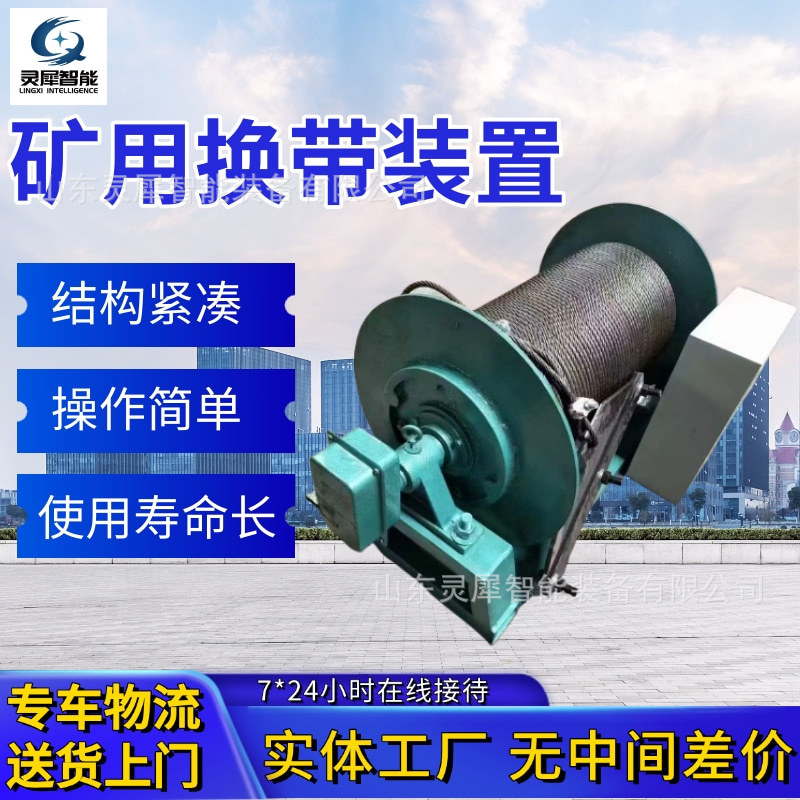 安定した構造のコンベヤベルト交換装置 スポットロールベルト式ベルト交換装置 HD-75 マイニングベルト交換装置