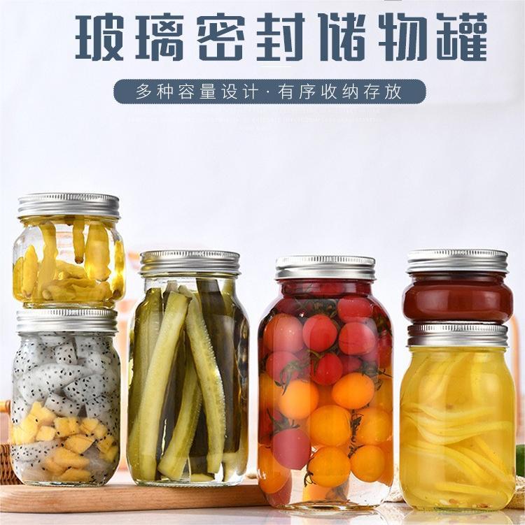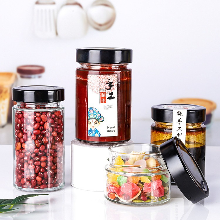 食品グレードのガラス瓶、缶詰瓶、蜂蜜ガラス瓶、きのこ漬物、漬物、唐辛子ソース、丸型ガラス密封瓶