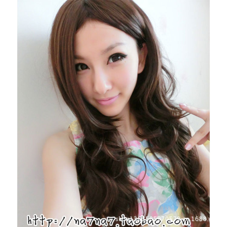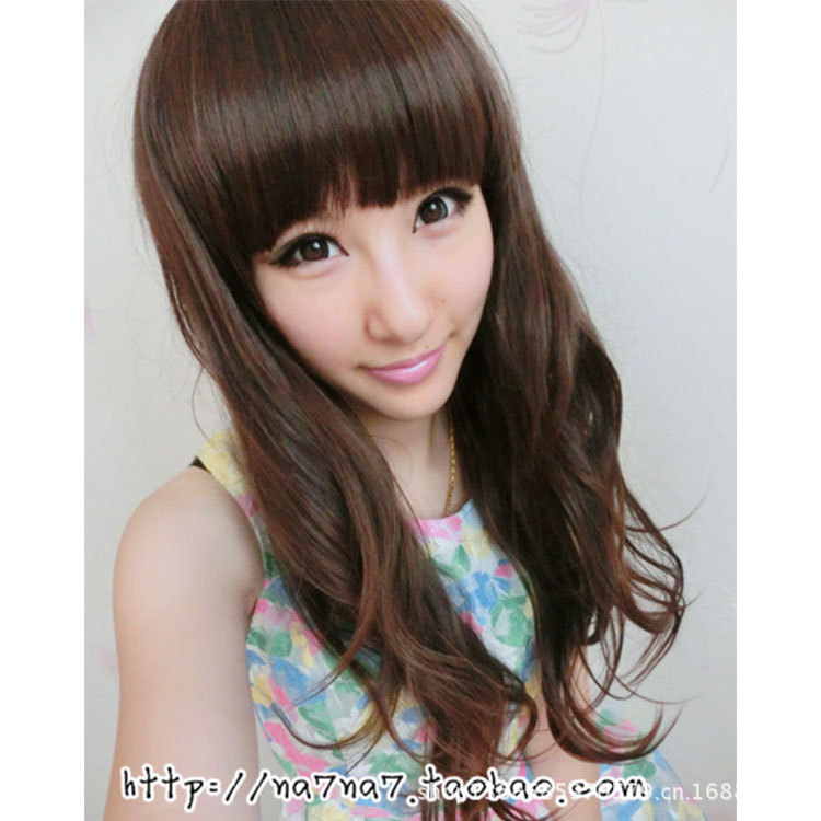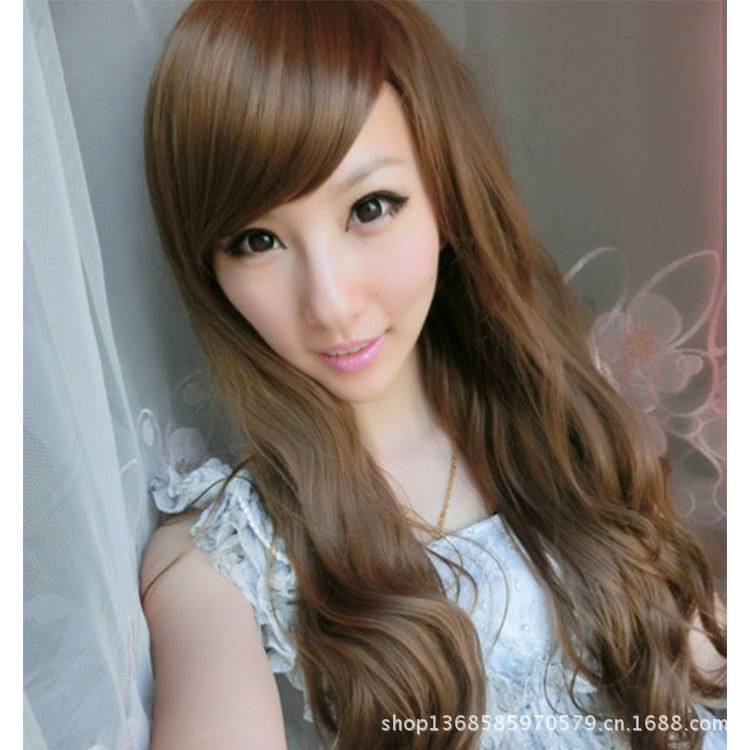 韓国版ロングカール2013新作かつらロングカール斜め前髪かつら高温糸かつらふわふわかつら