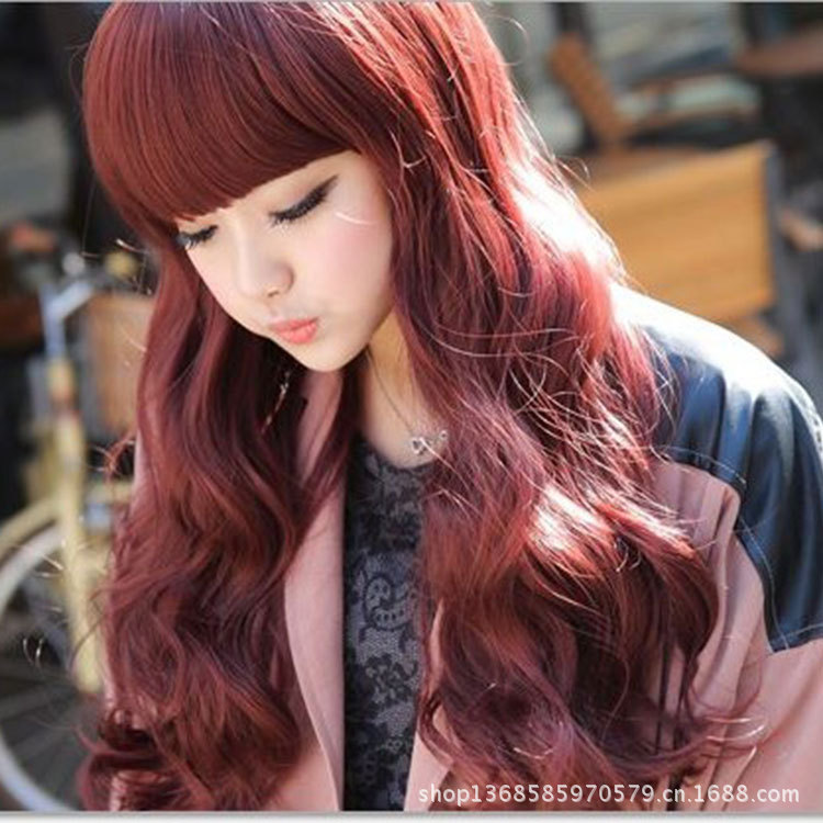非主流かつら平斜前髪梨花頭巻き髪中長髪カールかつら女工場