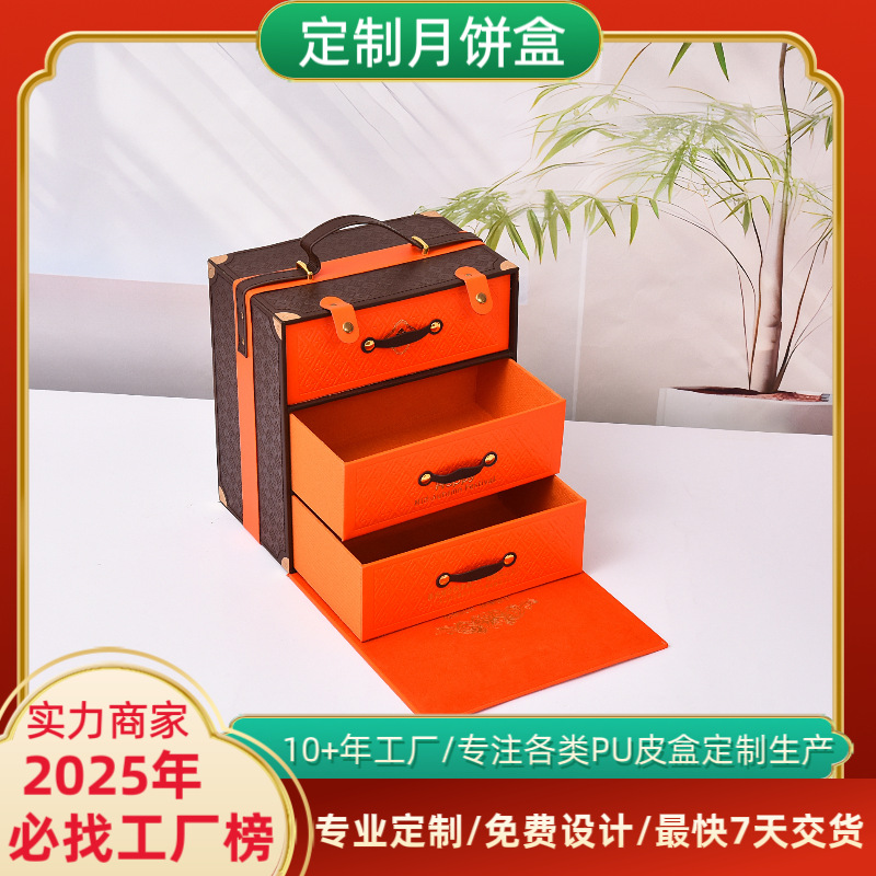 人気のナッツギフトボックスカスタム月餅食品スナック包装箱空箱三層引き出しボックスレザーボックスポータブルレザーボックス