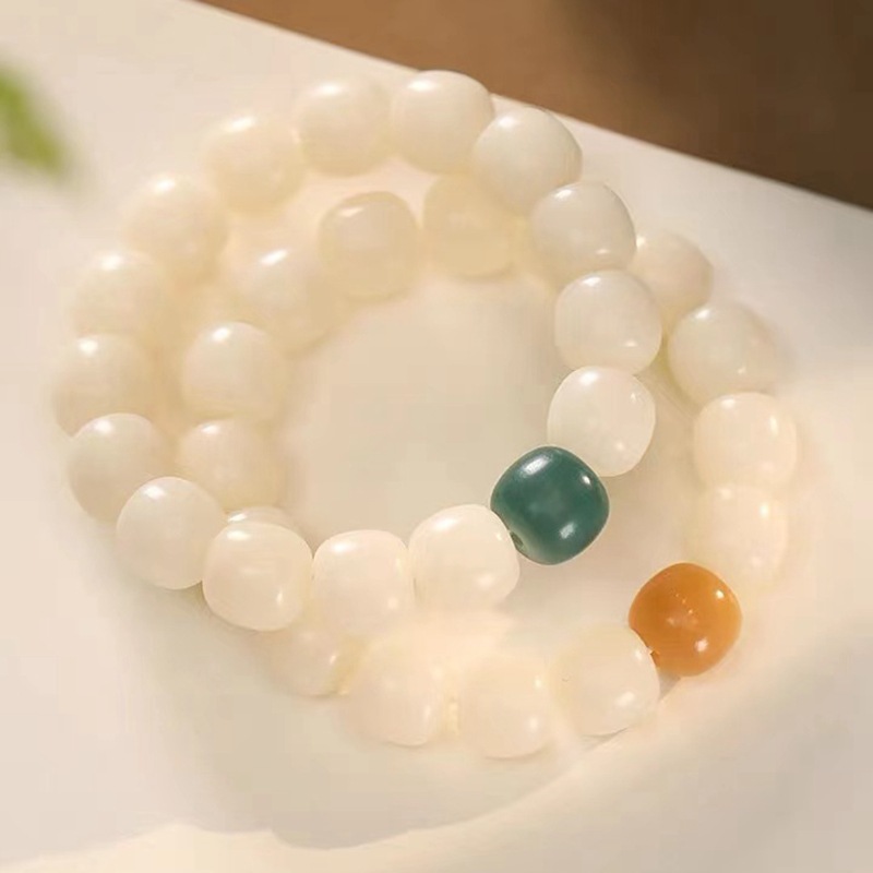 メーカー卸売り108個の玉化乳黄そろばん玉高投げクリーム黄菩提根そろばん仏珠数珠ブレスレット