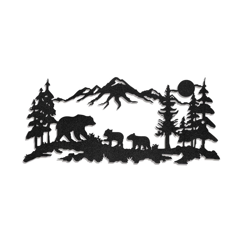 金属森林熊芸術自然壁芸術樹装飾鉄工芸品壁貼り壁装飾鉄芸透かし彫りシルエット