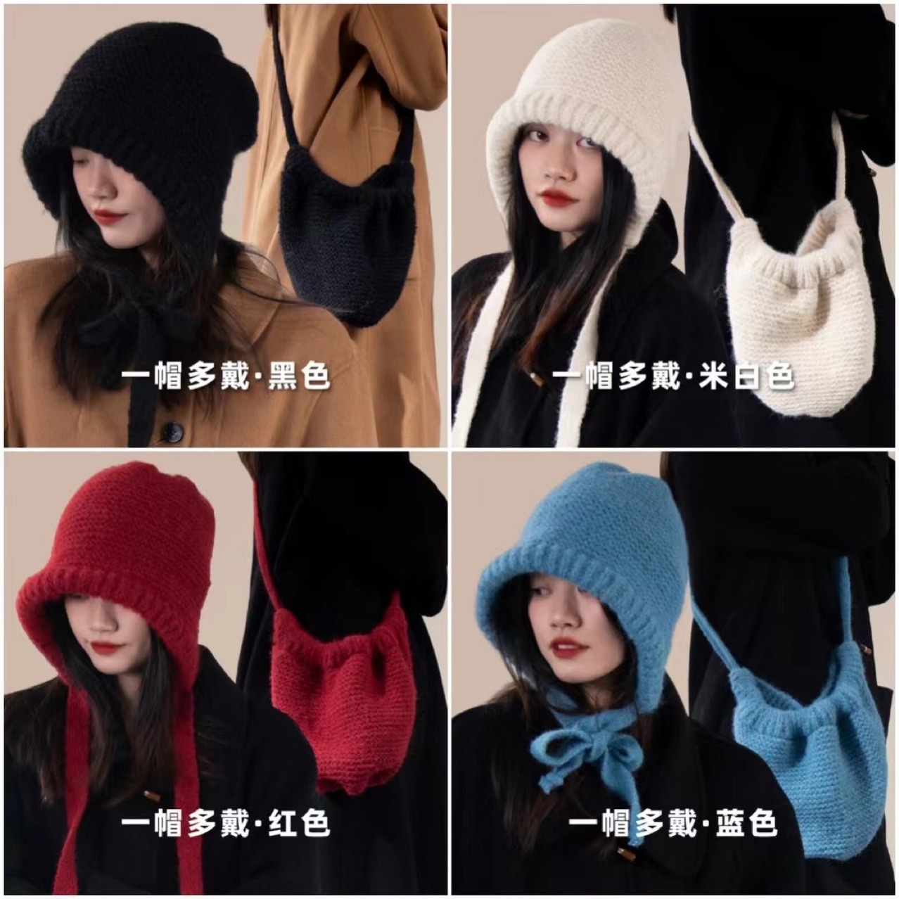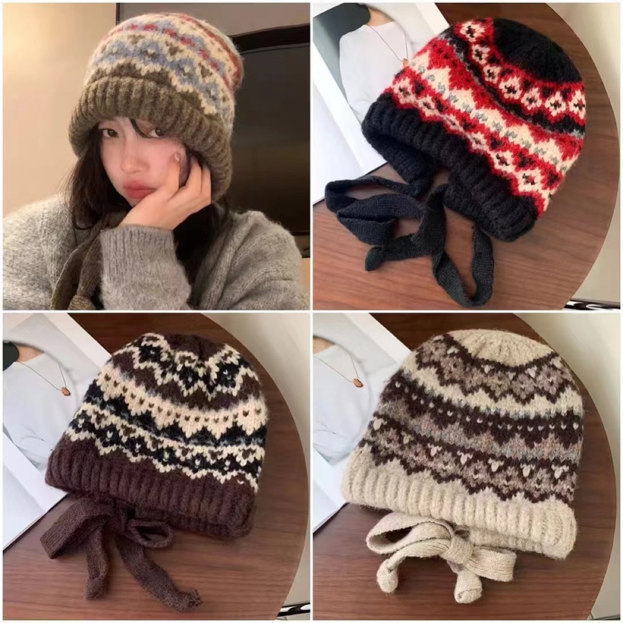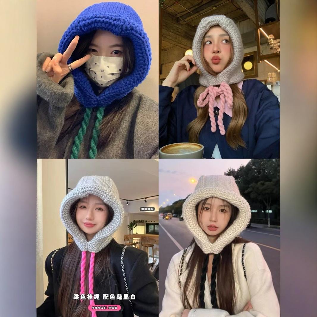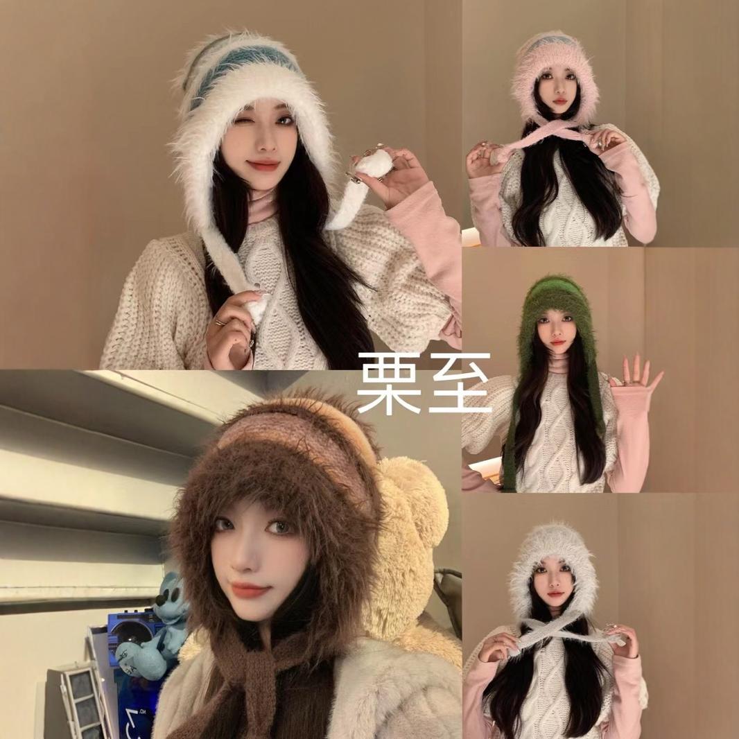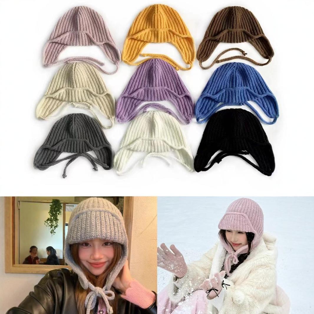 韓国版insカラー砂糖豆ぬいぐるみニット帽女性秋冬保温耳保護毛糸帽百合顔小帽子