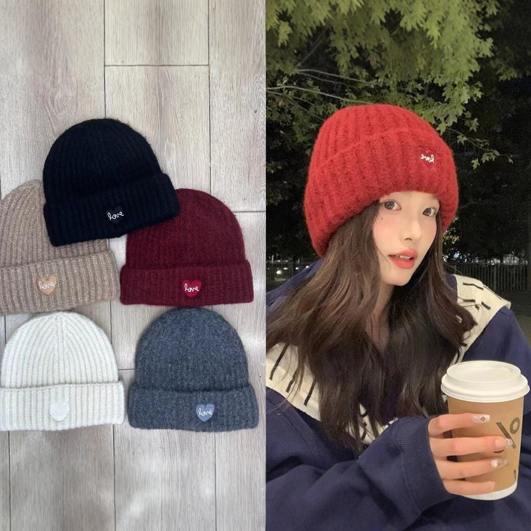 韓国系の愛の刺繍がシンプルでカジュアルなニット帽子の柔らかいモチモチの毛糸帽子がゆったりしていて、保温耳保護帽子が厚くなります。