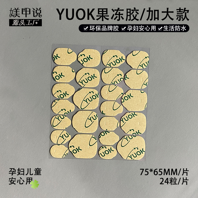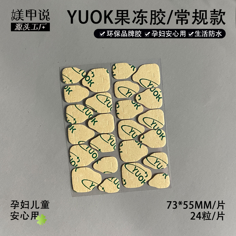 YUOKメーカーがアップグレードした超粘着性の大型ゼリー接着剤、環境に優しく、研磨不要、高粘度のリゾートネイル、両面テープ式の付け爪