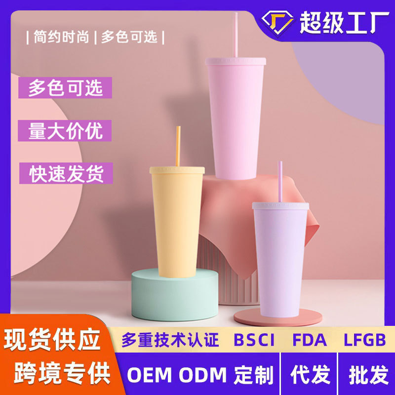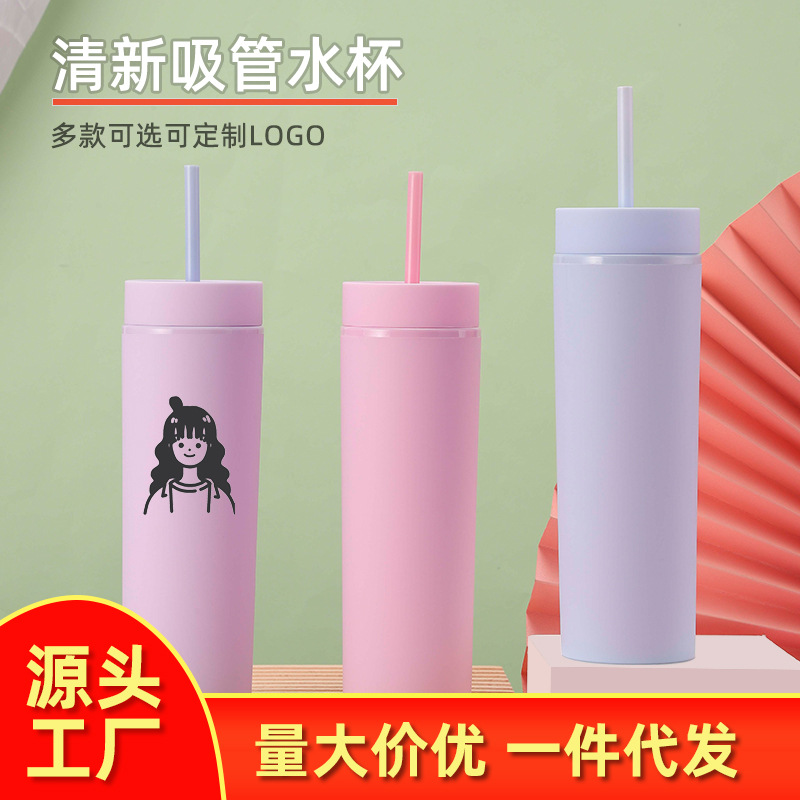 メーカー卸売りsknyゴム塗料ストレートストローカップ16オンス二重プラスチックストレートカップ大容量冷たい飲み物カップ