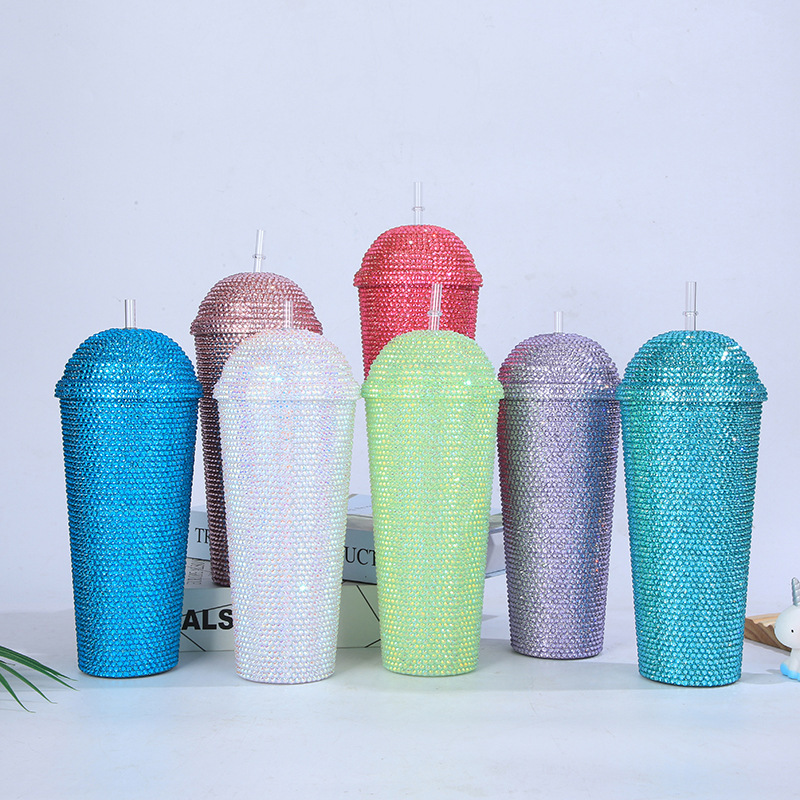 新しいネットの赤い高颜値はドリルの金の二重のプラスチックのミルクティーのコーヒーカップの家の事務室のストローのコップを入れます。