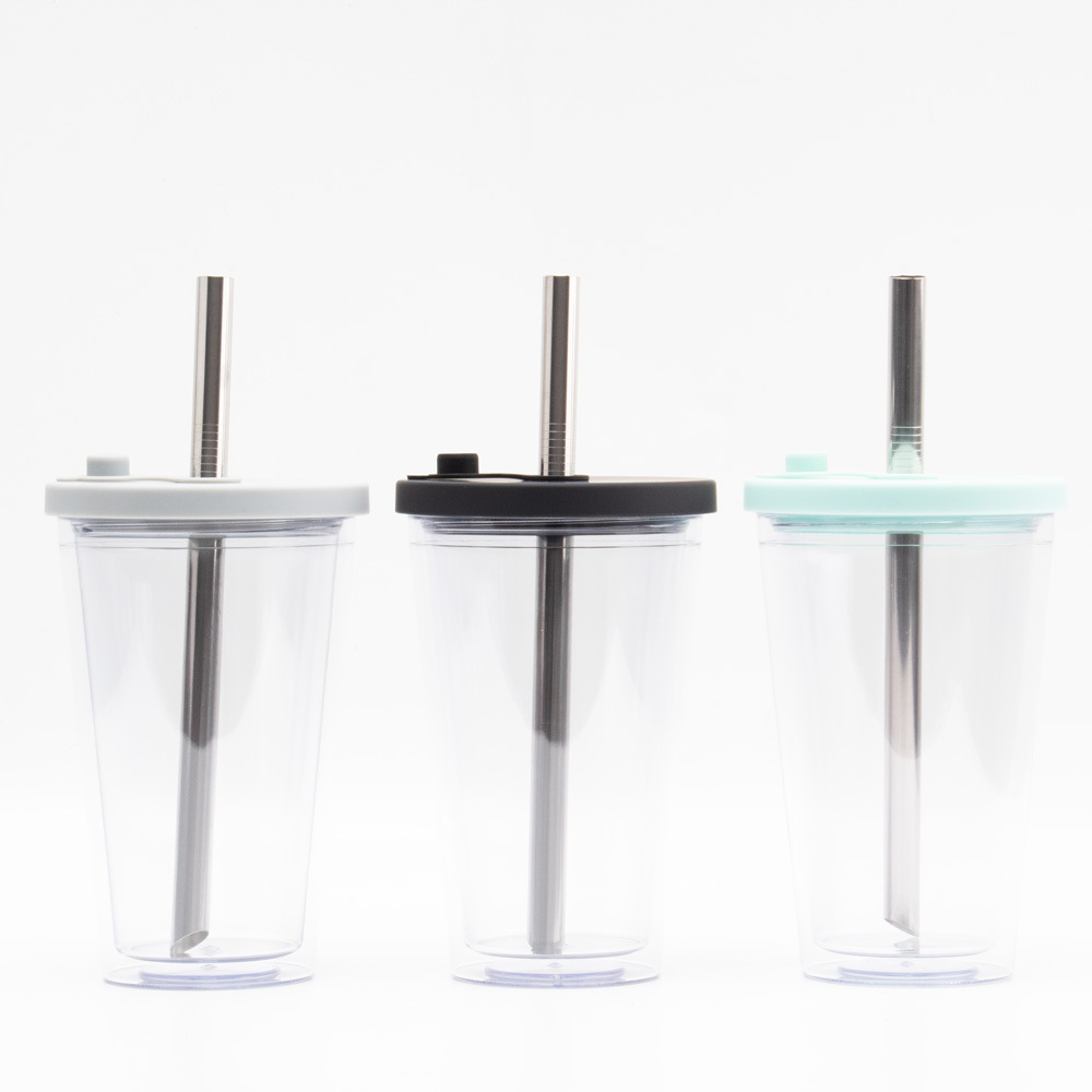 500ml二層プラスチックカップステンレスストロー付き漏れ防止携帯大口径ギフト真珠ミルクティーカップ