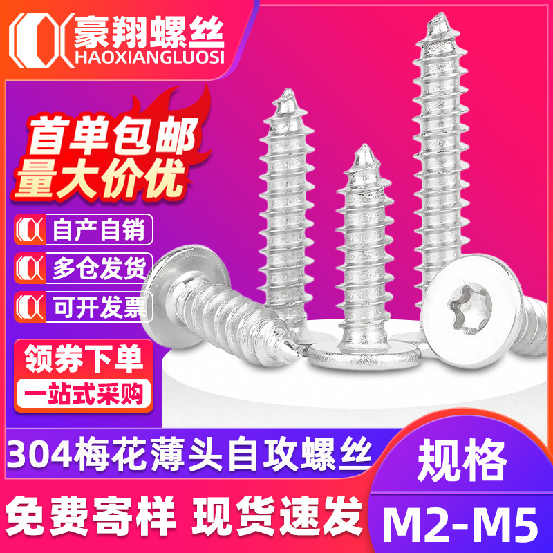 304ステンレス製梅花槽大平頭タッピングねじ薄頭タッピングねじm2 | m3 | m4平頭ねじ