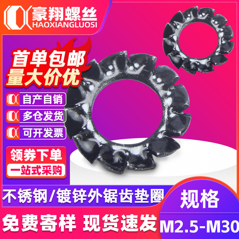 304ステンレススチール黒内外歯平ワッシャーのこぎり防松ワッシャー滑り止め止めワッシャー