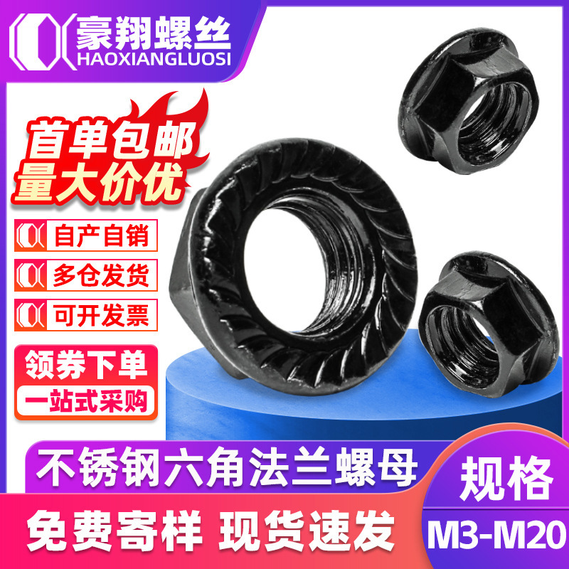 304ステンレス髪黒色フランジナット201パッド付き滑り止め六角フランジナット5m m 6m 8ねじナット