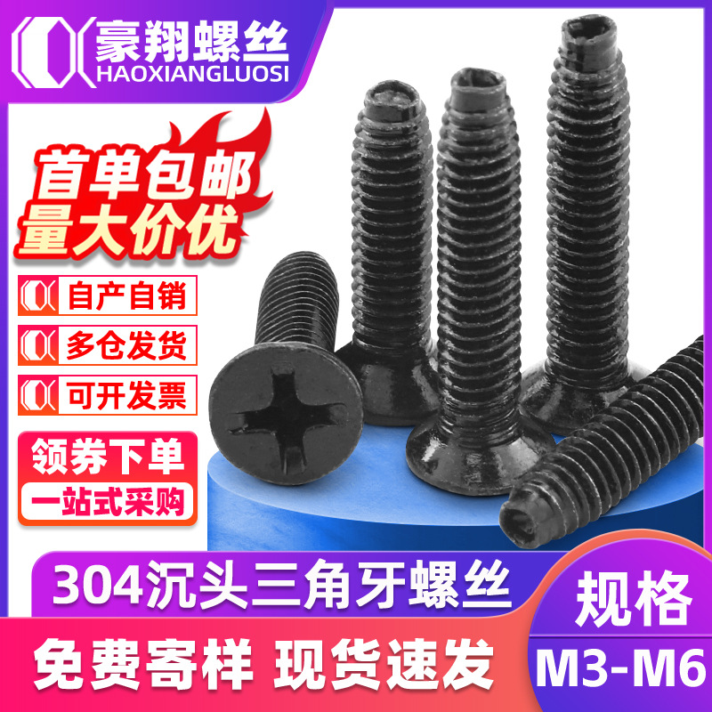 304ステンレス黒十字三角歯タッピングねじ沈頭三角ねじ工場現物m3m4 m 5