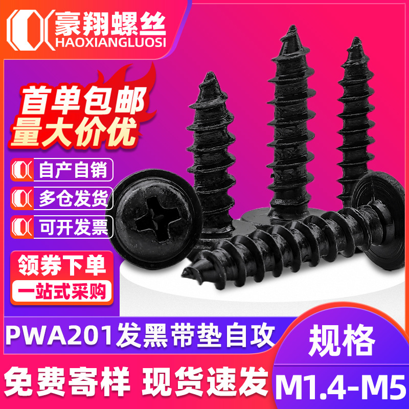 201ステンレス鉄黒pwa十字丸頭パッド付きタッピングねじ十字溝盤頭ねじm2/m4
