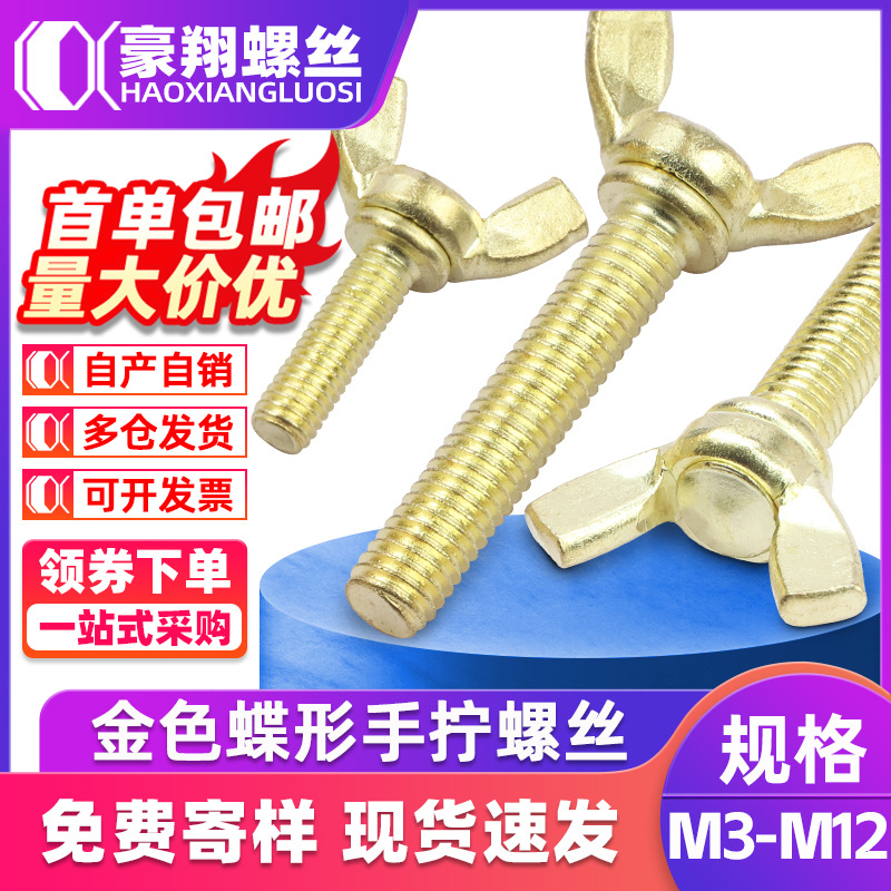 304ステンレスゴールド手摺ネジ工場蝶頭ロックネジ羊角固定ネジm6m8m12
