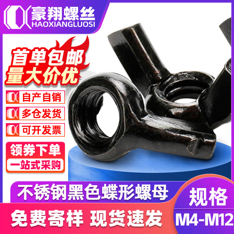 304ステンレス黒色蝶形ナット卸売りスポット手ねじり蝶ナットメーカー羊角蝶母m6m8m10