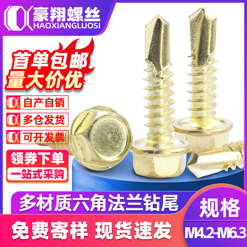 304/410ステンレス外六角ドリルねじ金色アリ糸アリピン六角ドリル糸M4.2
