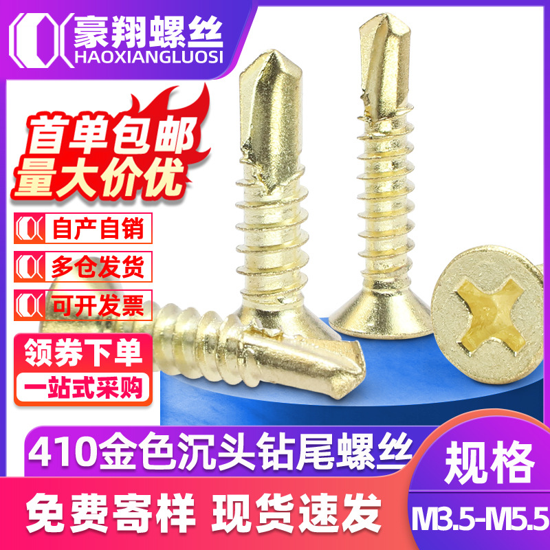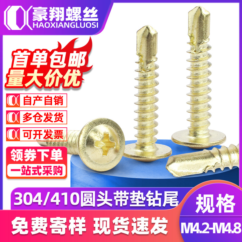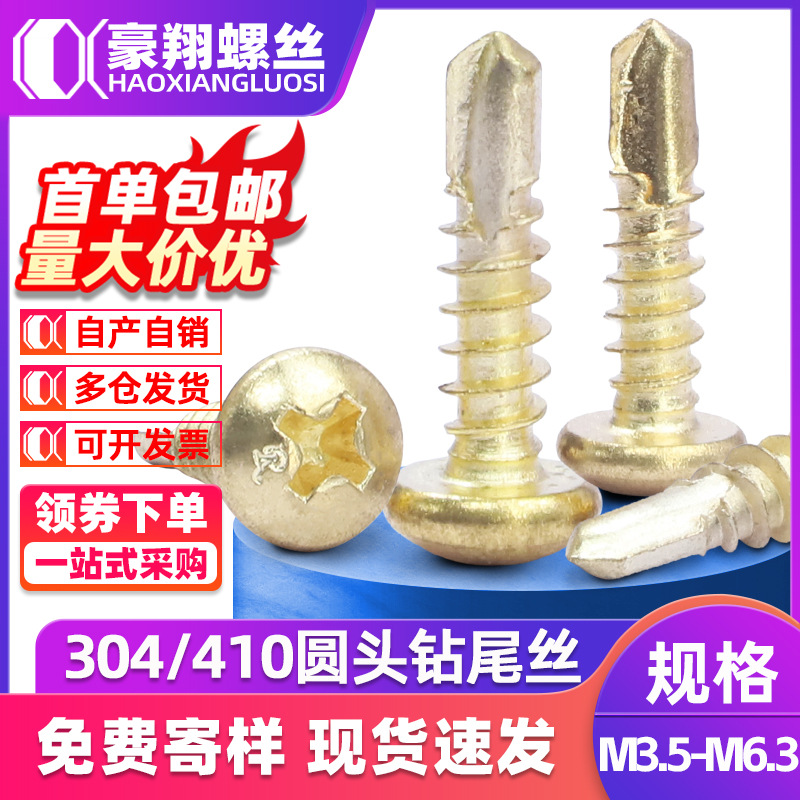 304/410ステンレス円頭十字ドリルねじ自己ドリル盤頭金色アリねじm3.5/m4.5