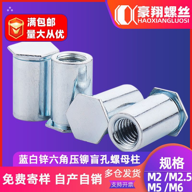 Bsoメッキ青白亜鉛平頭加リベットスタッド炭素鋼六角ブラインド穴加リベットスタッドm2/m 2/m 5/m 6