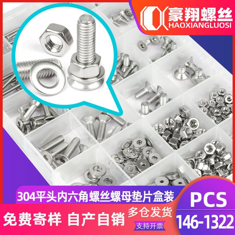 304ステンレス平頭六角穴付きねじセット六角穴付きねじナットガスケットの箱に入っています。