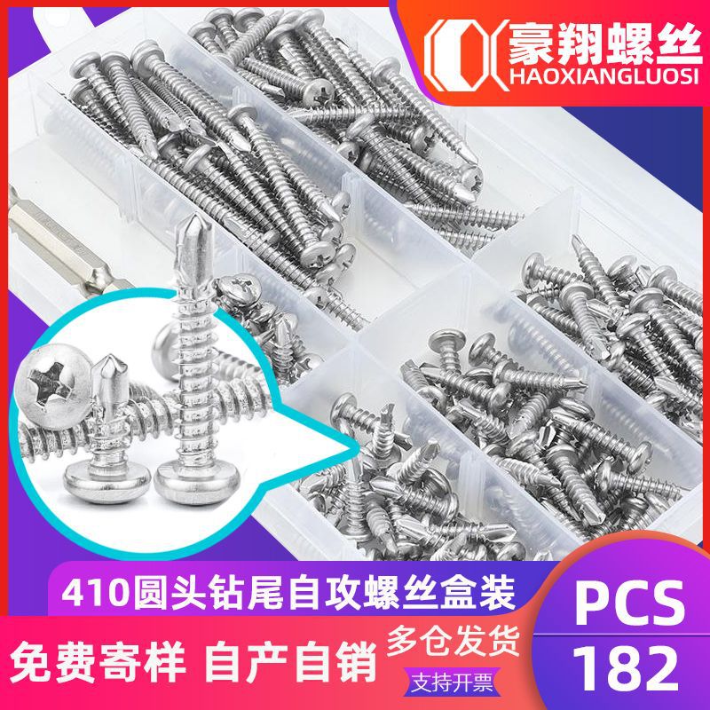 410ステンレス丸頭ドリル尾タッピングねじセットアリタッピングねじセット卸売りクロスボーダー182pcs