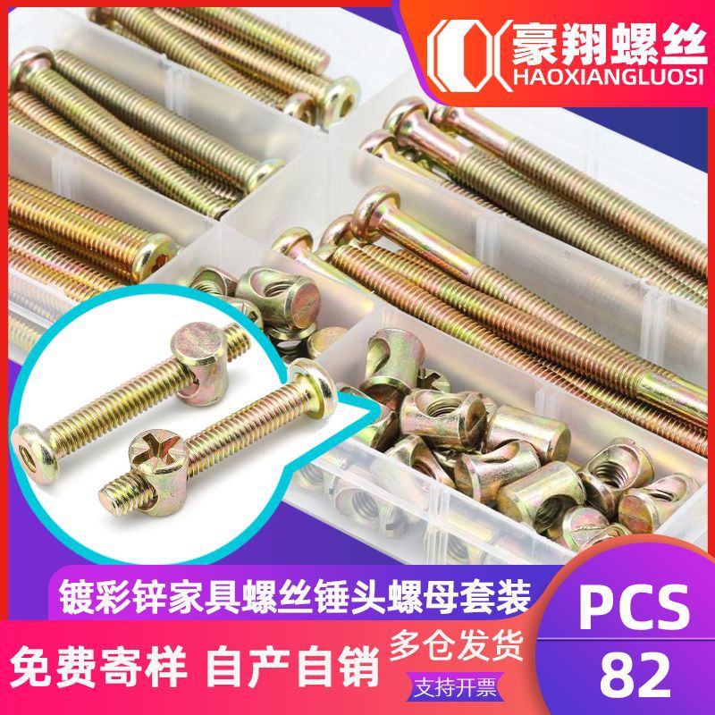 6.8級カラー亜鉛メッキ平丸頭内六角家具ねじハンマーナットセット接続ねじ卸売り82pcs
