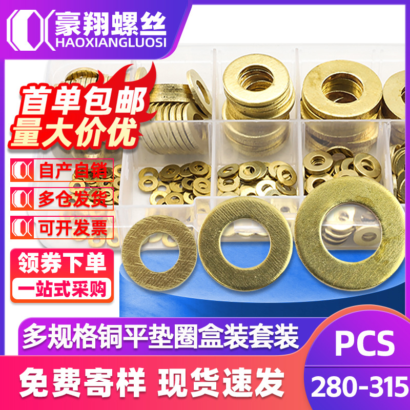 金色黄銅スペーサーセット多サイズ仕様銅平ワッシャケース卸売り280pcs/315pcs