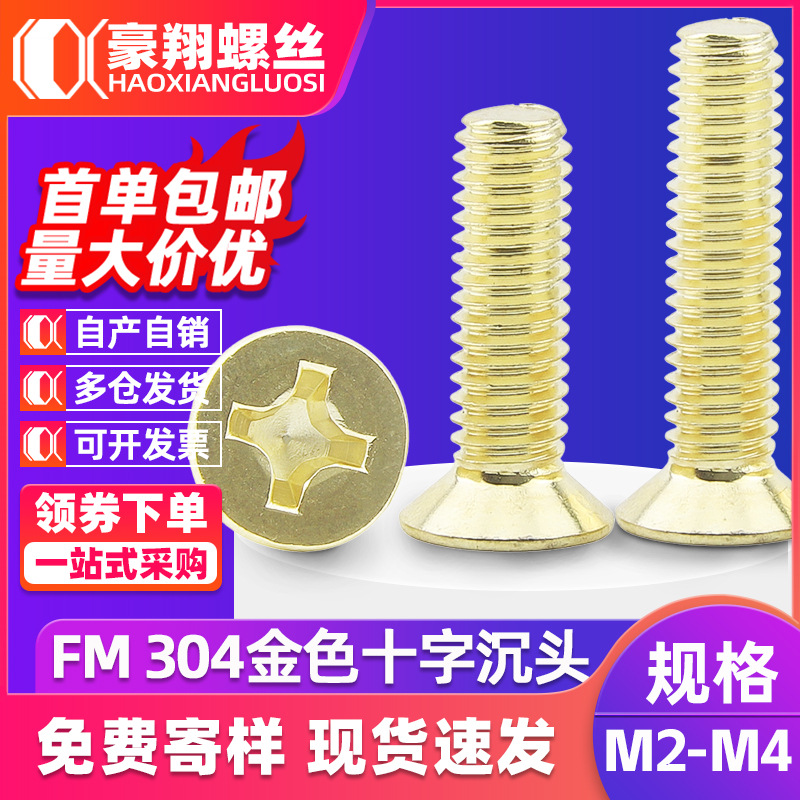 304ステンレスfm金色の皿の歯の小さいねじの十字の小さい平頭のねじの卸売りのm2.5/m3/m4