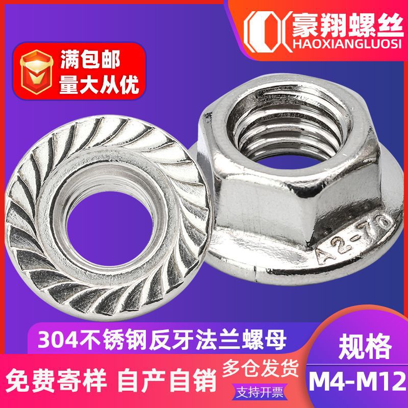 304ステンレス反歯フランジナット反糸六角フランジ左回転フランジ面ナット卸売りM4/M6M8