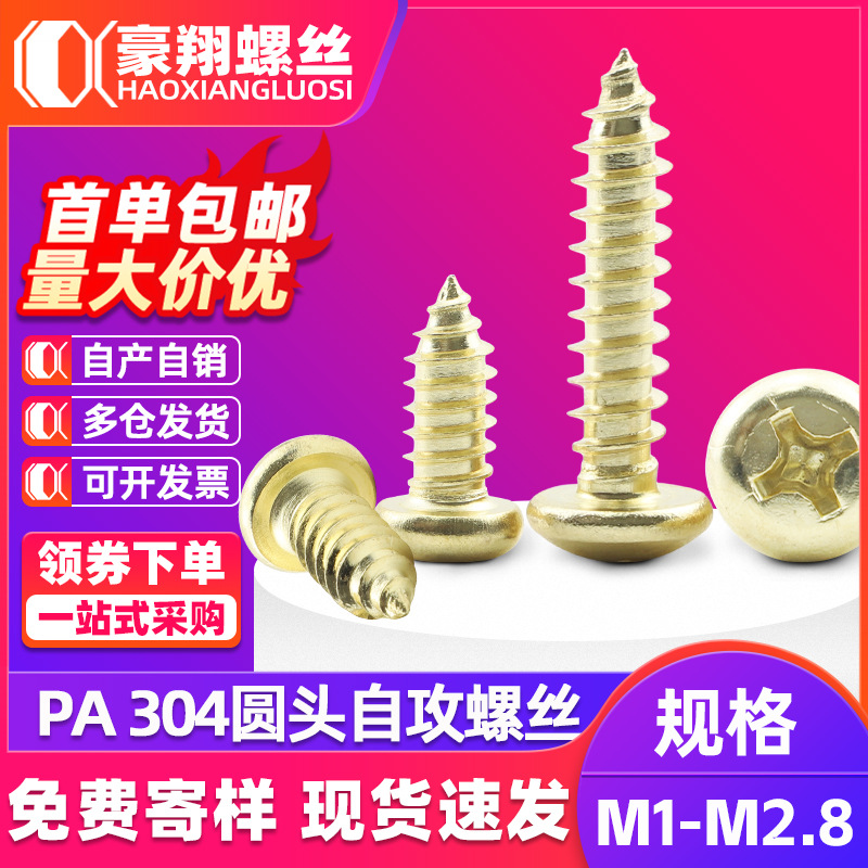 304ステンレスメッキ金色丸頭タッピング小ねじ十字溝盤頭ねじm1.4/m1.7/m2