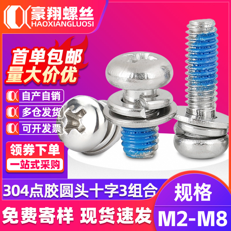 304ステンレス十字溝丸頭平弾マット三組合せ点ゴムねじ盤点ゴムねじm3/m 5